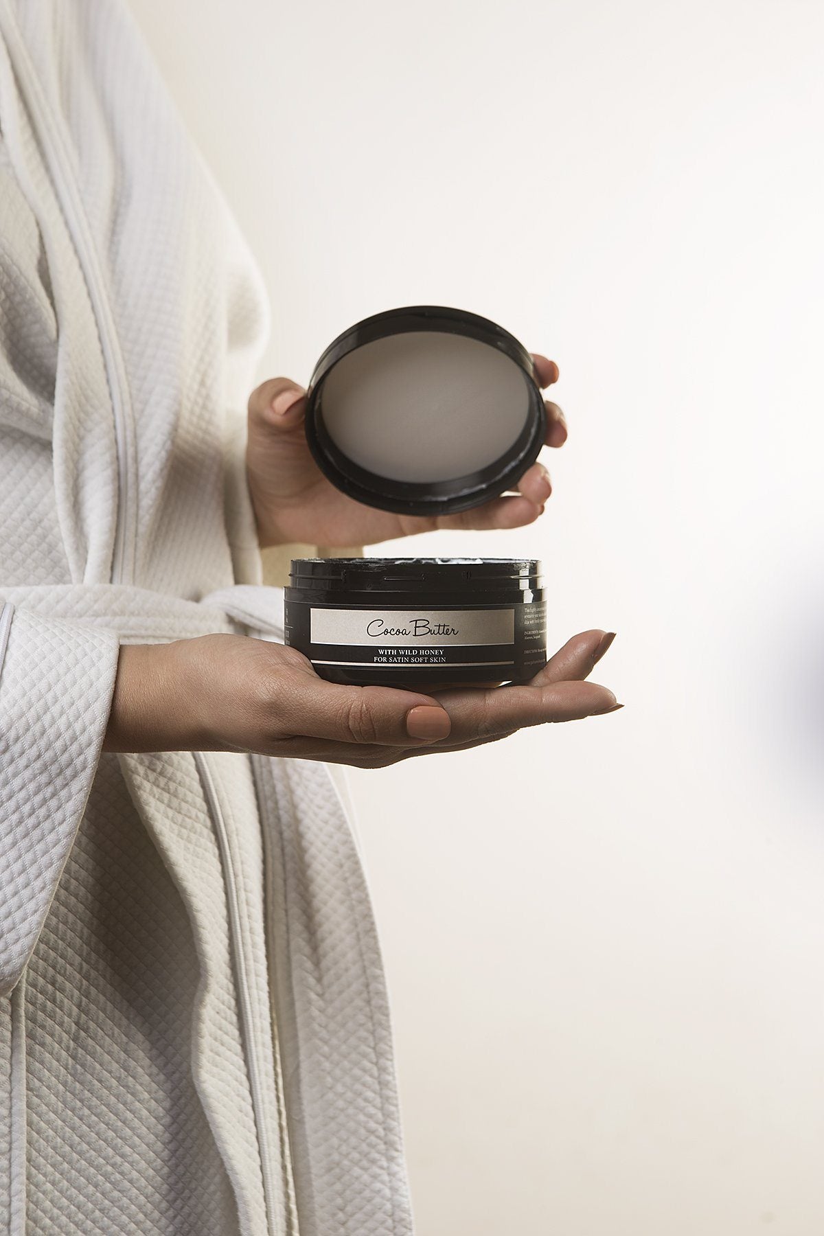 This highly concentrated hydrating formula uses a rich blend of Shea, Cocoa butter & skin nourishing plant based oils to revitalize your skin for a healthy, radiant glow from head to toe. Delicious, creamy, and decadently thick, indulge your skin with freshly spun wild honey and Vitamin E oil for a silky smooth finish.