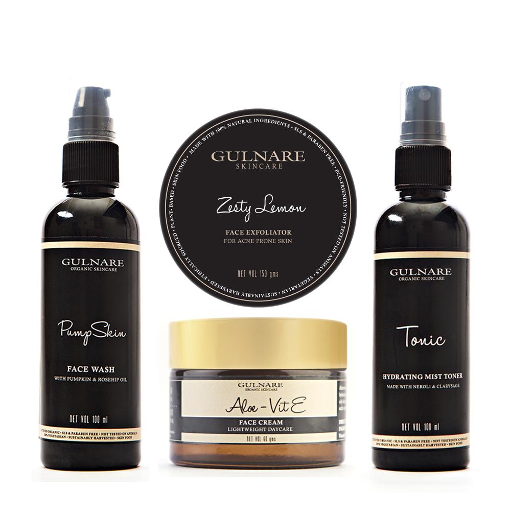 Specialised formulations for dry skin, comprising a cleanser, exfoliator, toner and moisturiser to impart hydration while controlling oil balance at every step. Follow this simple 4 step skincare regime daily to improve skin health & a radiant glow.