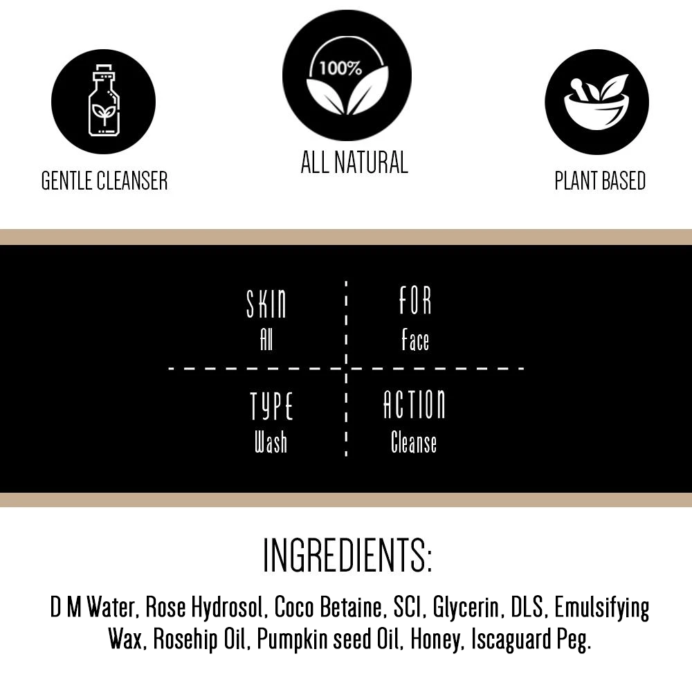 Made with Pumpkin, Honey & Rose hip oil, this natural, all-purpose daily cleanser contains Vitamins & exfoliating enzymes from Honey & Pumpkin that help revitalise your skin. It is gentle enough for ultra sensitive skin and works double duty by washing away surface impurities and protecting your skin’s moisture balance.