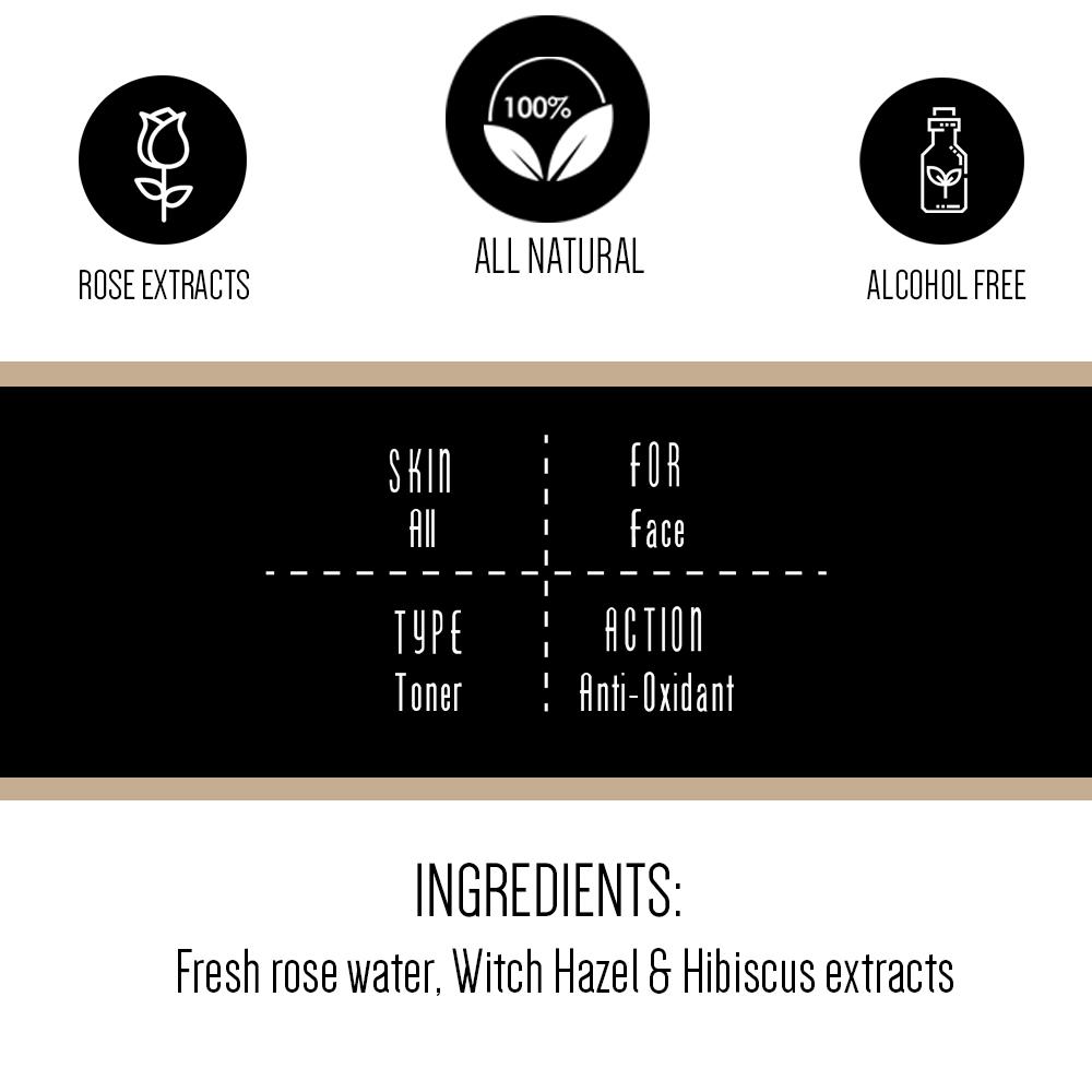 A refreshing, soothing and clarifying organic toner that will leave your skin hydrated, dewy and smelling rosy. This alcohol free blend of Rose water, WitchHazel & Hibiscus extracts cleanses your skin, tightens pores, boosts elasticity and restores “bounce” to skin.